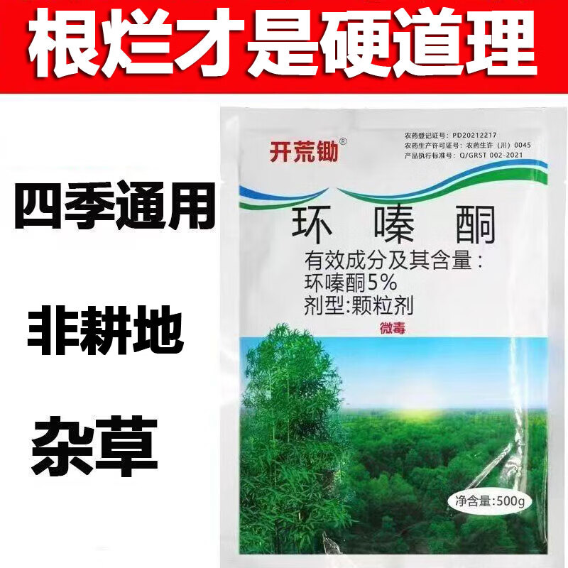 开荒锄环嗪酮哃铜 环嗪酮除草剂烂根死草烂根除竹子灌木专用药开荒公路 【颗粒剂直接撒】500克5袋
