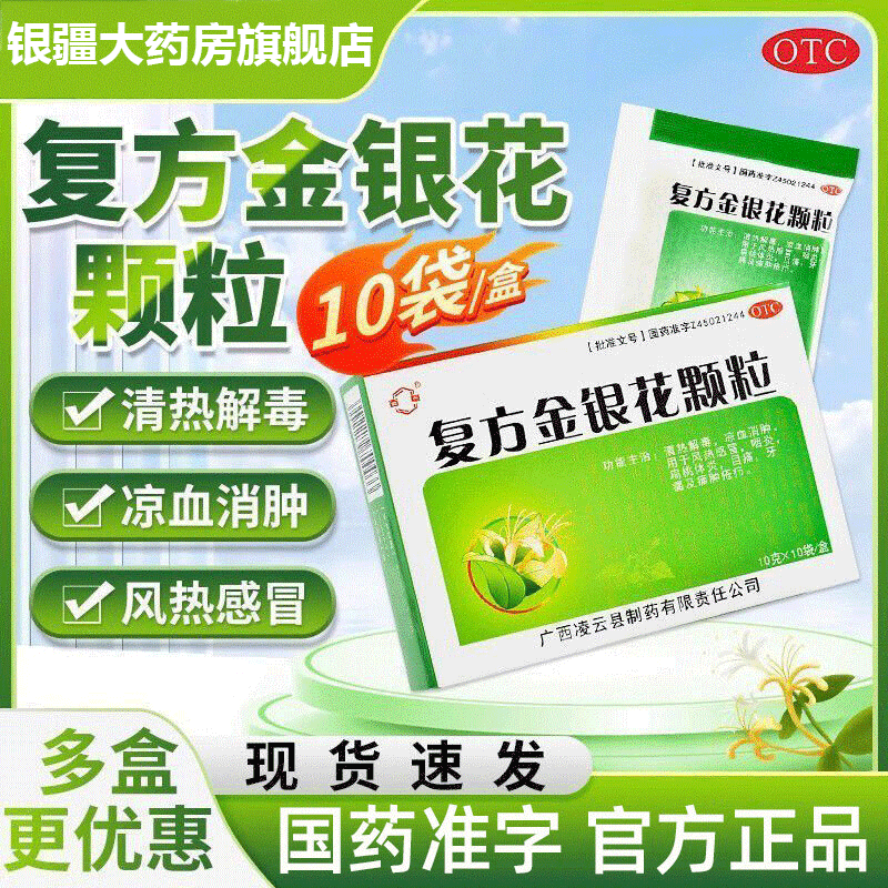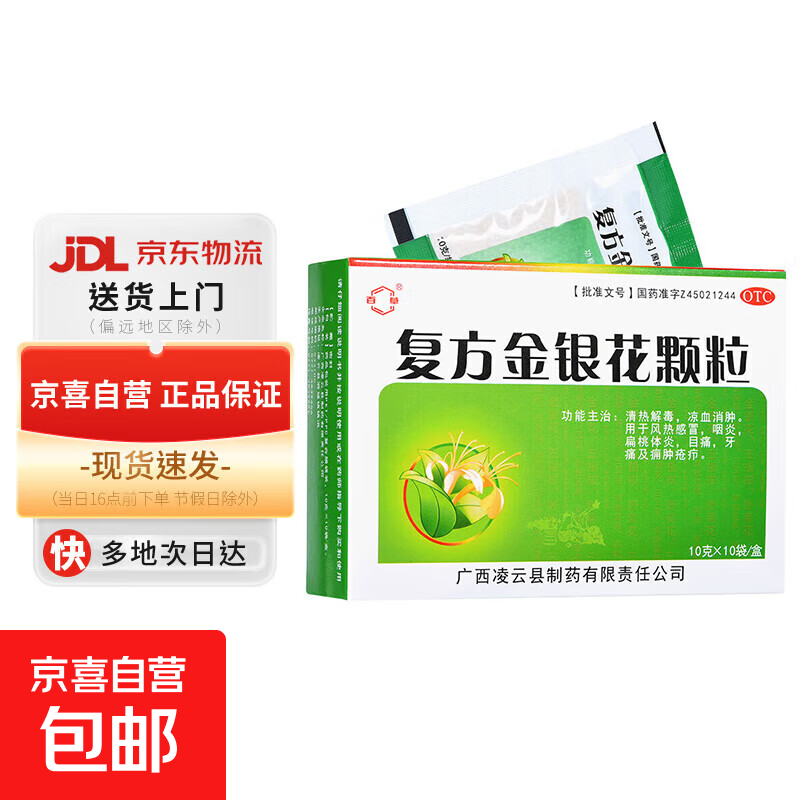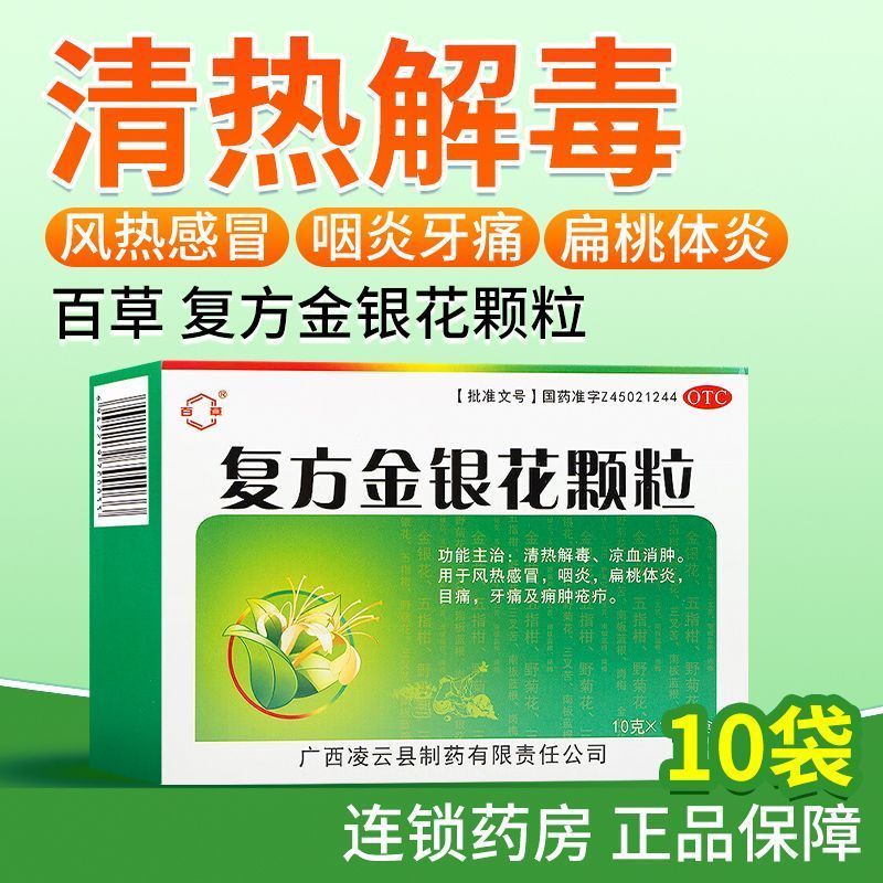 [百草]复方金银花颗粒 10g*10袋 2盒装 10g*10袋【日期新鲜 当天发货】清热解毒消肿风热感冒咽喉疼痛咳嗽 新鲜日期 当天发货
