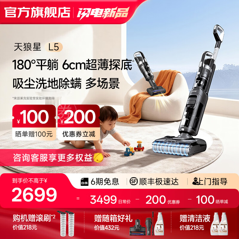 莱克【2025新品】L5宠物洗地机【京东自营】天狼星吸尘器洗地机家用除螨洗拖一体自动清洗P6ultra升级