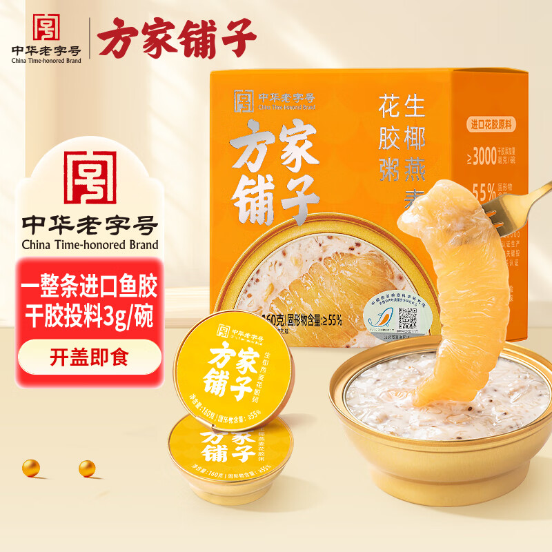 方家铺子花胶160g 生椰燕麦即食花胶鱼胶 女性滋补营养礼品