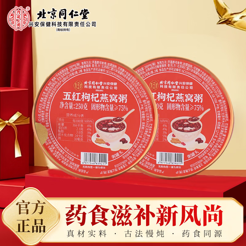 内廷上用北京同仁堂五红枸杞燕窝粥即食节日礼孕妇儿童中老年营养滋补250g