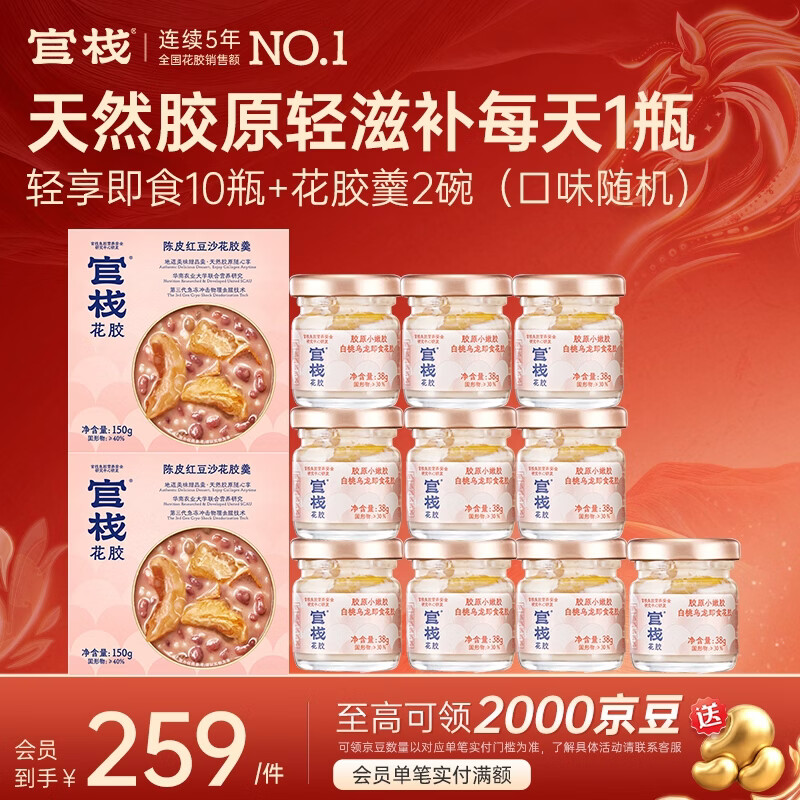 官栈 轻享即食花胶 鱼胶天然胶原蛋白 孕妇滋补营养品 轻享花胶38g*10瓶+花胶羹 150g*2碗
