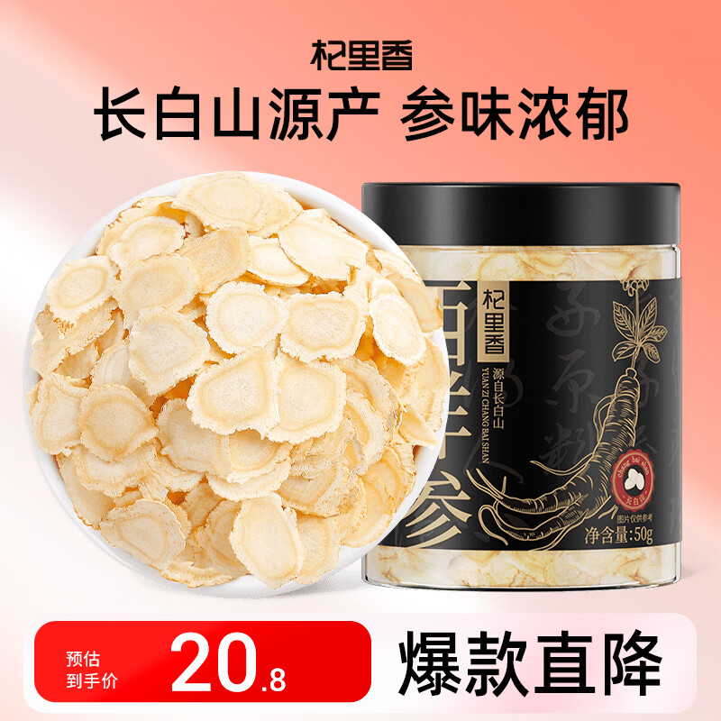 杞里香 西洋参片50克 长白山人参花旗参含片滋补营养补品泡水可磨粉
