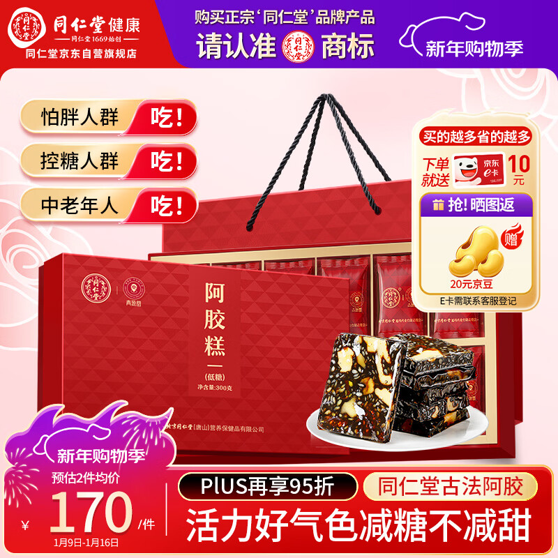 同仁堂阿胶礼盒低糖阿胶糕300g营养滋补品气血女送长辈高端食品年货礼盒