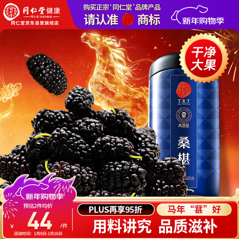 同仁堂品牌北京同仁堂黑桑葚干桑椹干500g即食养生搭枸杞营养滋补品