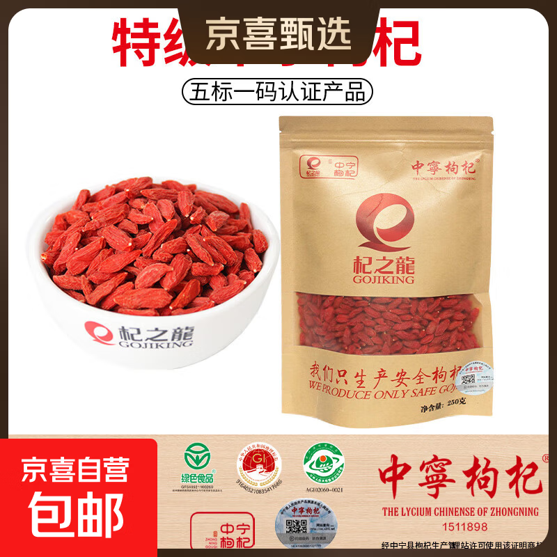 枸杞子宁夏特级头茬大果枸杞红枸杞干大颗粒泡水泡茶煲汤滋补营养 精选大果枸杞袋装100g