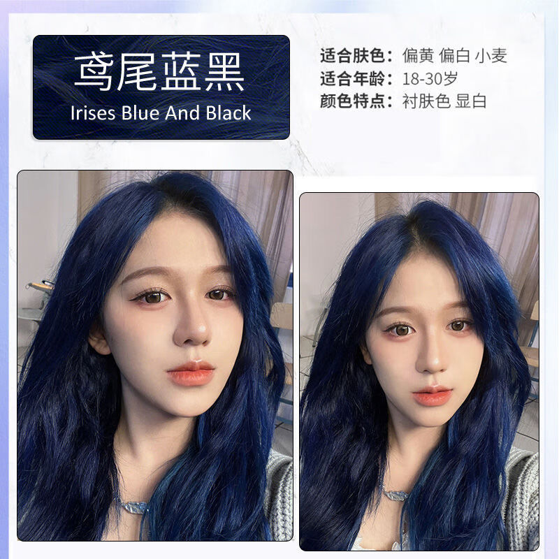 俪缇鸢尾蓝黑染发膏植物天然显白自己在家染不沾染发剂免漂黑紫色网红 鸢尾蓝黑