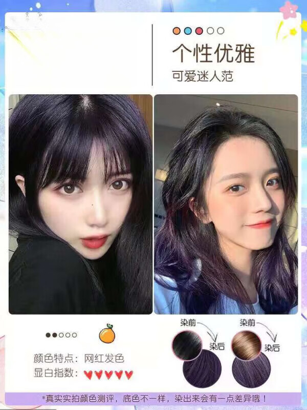 爱琳伊尔雾感星空紫色染发剂植物2022流行色显白自己在家染蓝黑色 脏橘色