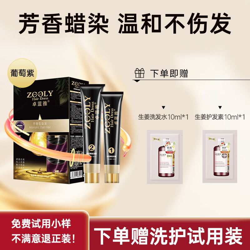卓蓝雅(ZOOLY)吉德迪系列100ml*2染发霜芳香蜡染温和不伤发持久固色染发 葡萄紫色