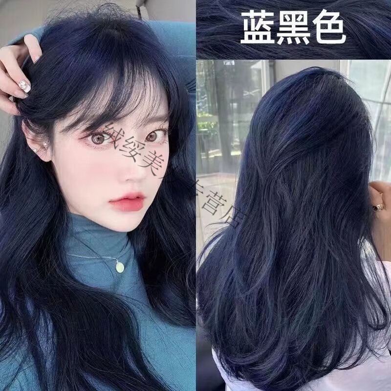 爱琳伊尔(Ailinyier)蓝黑色染发膏2023流行色自己在家染发剂植物黑紫色盖白免漂 蓝黑色 100g 配双氧奶工具