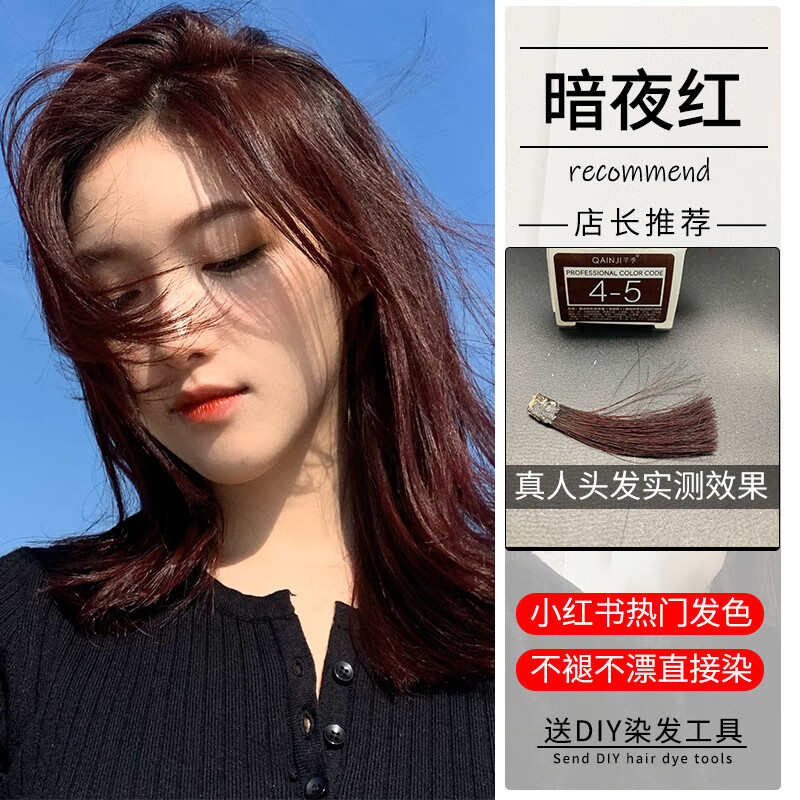 芊季(qianji)潮色流行色显白奶茶灰棕色黑色蓝黑色紫色黑茶色染 4-5暗夜红