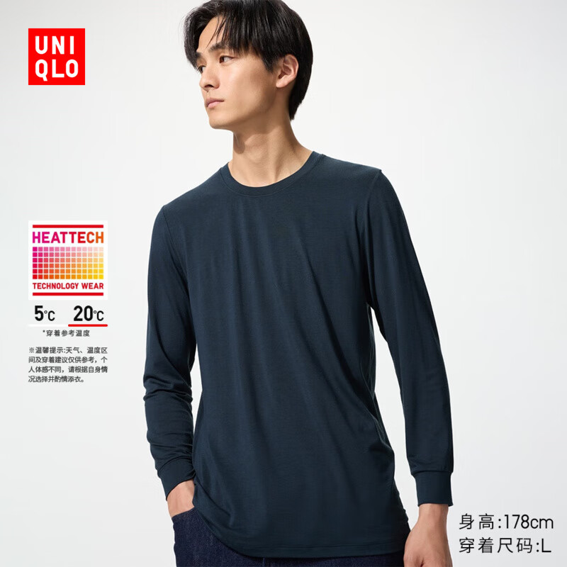 优衣库男装HEATTECH圆领T恤9分袖保暖衣秋衣内衣479428 479428/69藏青色 L