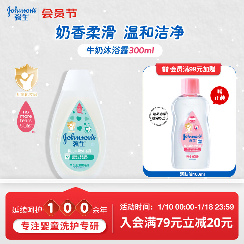 强生(Johnson)婴儿牛奶沐浴露300ml 宝宝儿童青少年沐浴保湿乳液全家可用旅行装