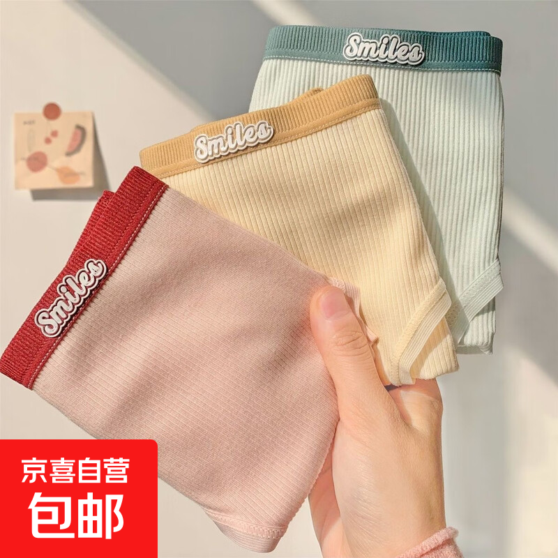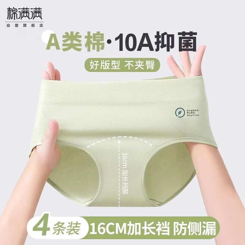 棉满满女士新疆棉内裤加长裆10A抑菌裆部纯色清新三角内裤女生短裤头4条
