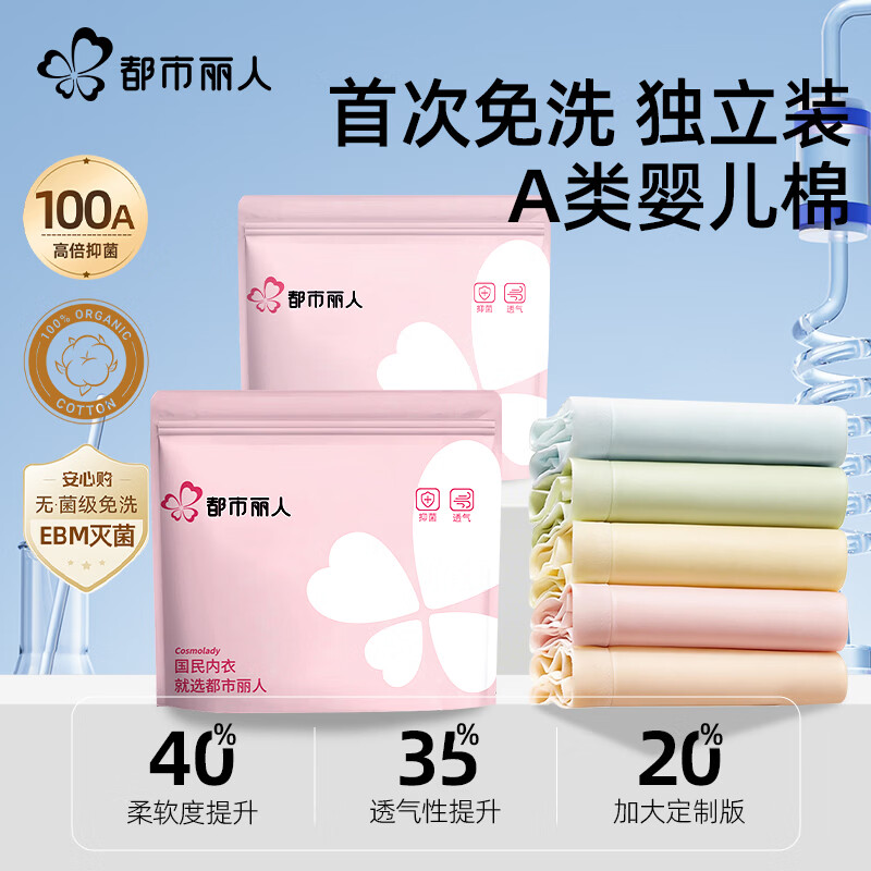 都市丽人【首次免洗】女士内裤女纯棉100A抑菌加长裆部中腰独立包装三角裤