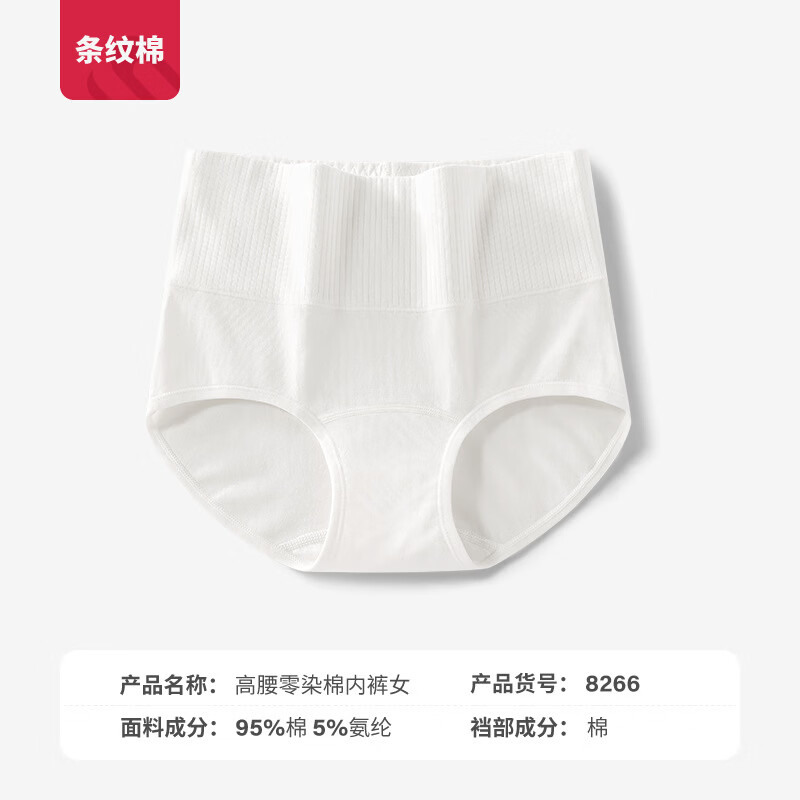 高腰内裤女士加长裆部收腹包臀不卡裆女士内裤 条纹棉(三条装) M 80-105斤