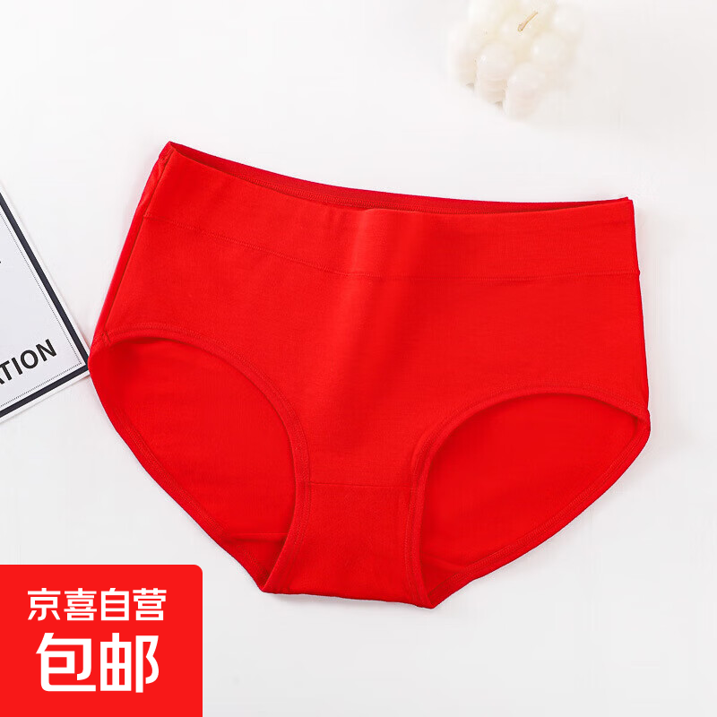 女士纯棉中腰内裤纯色舒适透气经典款纯棉裆部提臀短裤三角内裤 007-大红色 1条 XL 【100-120斤】