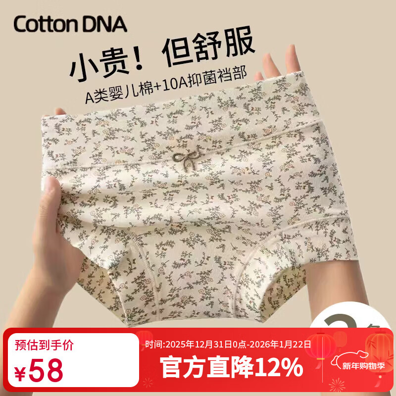 棉基因女士内裤女【A类婴儿棉】10A抑菌加长裆部加宽小平角碎花舒适女内