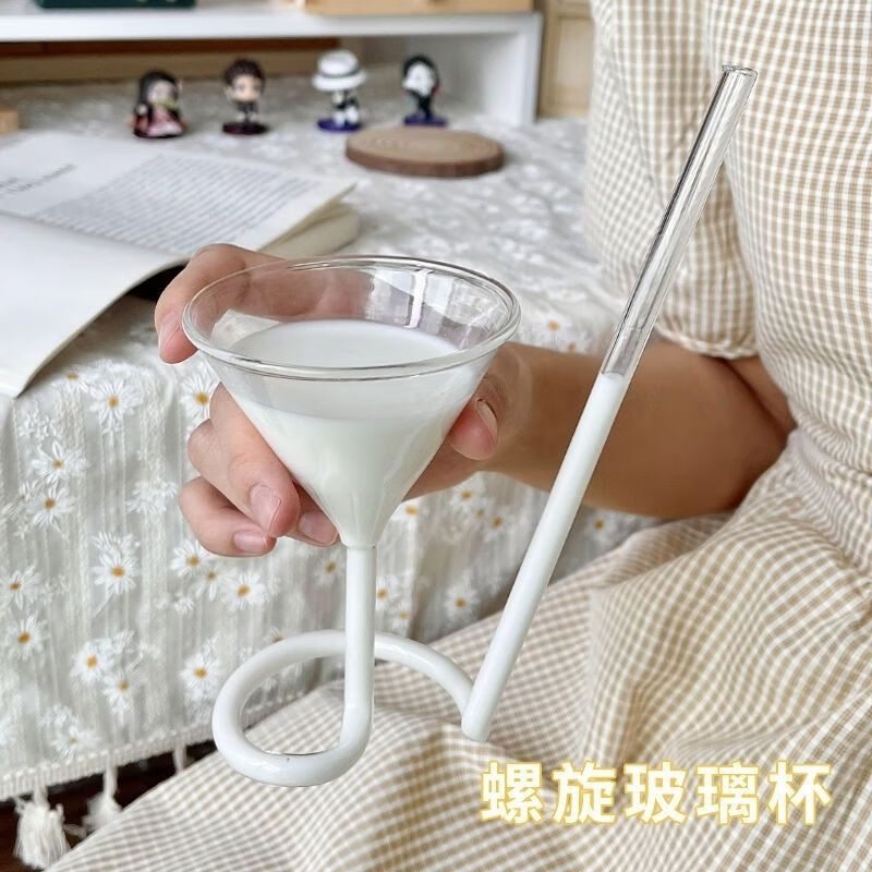 维诺亚搞怪玻璃杯螺旋吸管牛奶鸡尾酒高颜值杯子 螺旋杯(送吸管刷)
