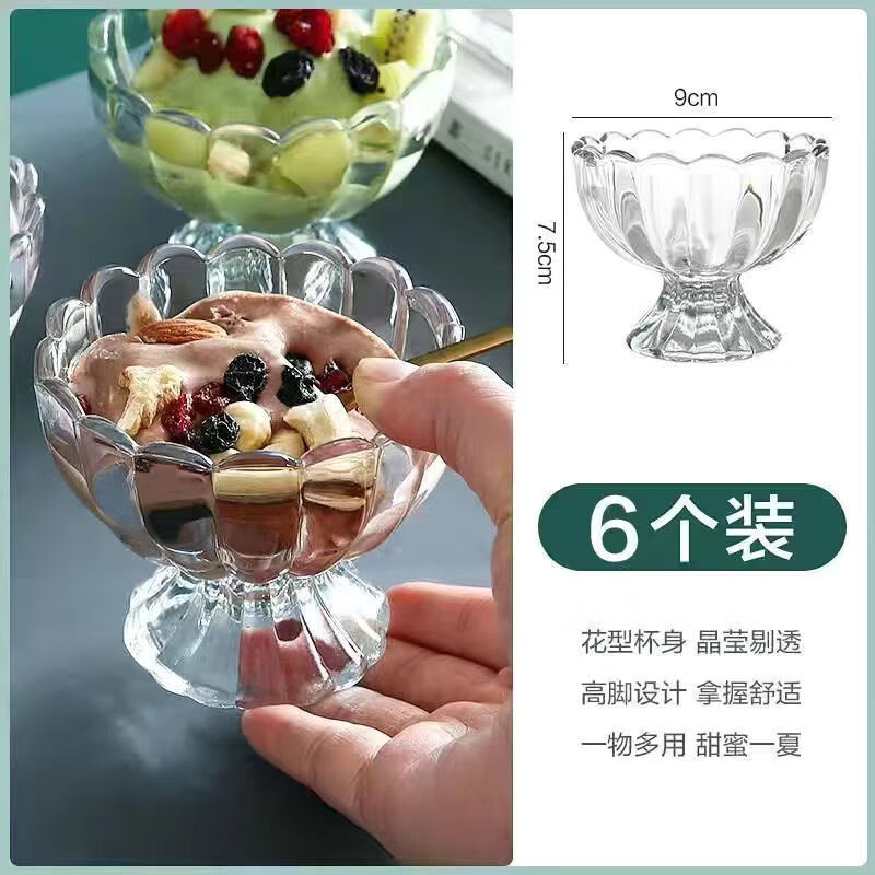 维诺亚冰淇淋杯水果汁甜品点心杯杯子ins高颜值冰激凌碗创意奶昔冷饮杯 (装) 6只