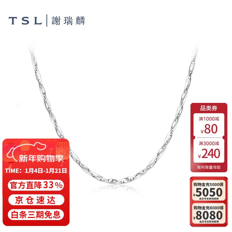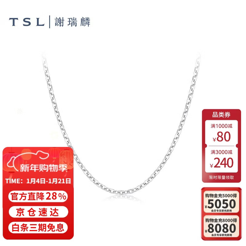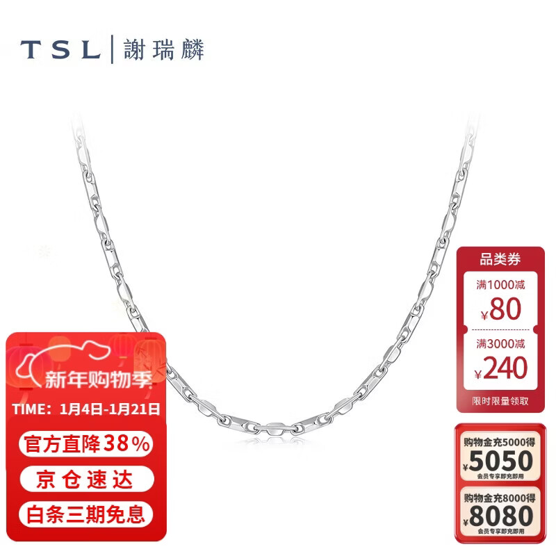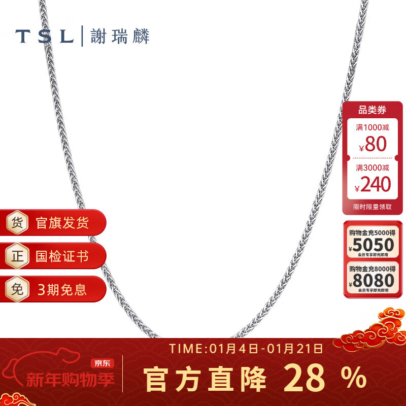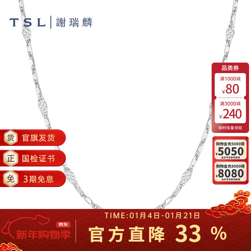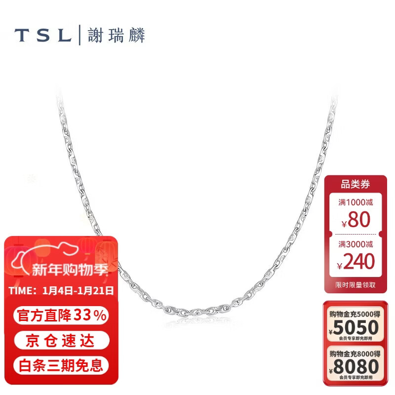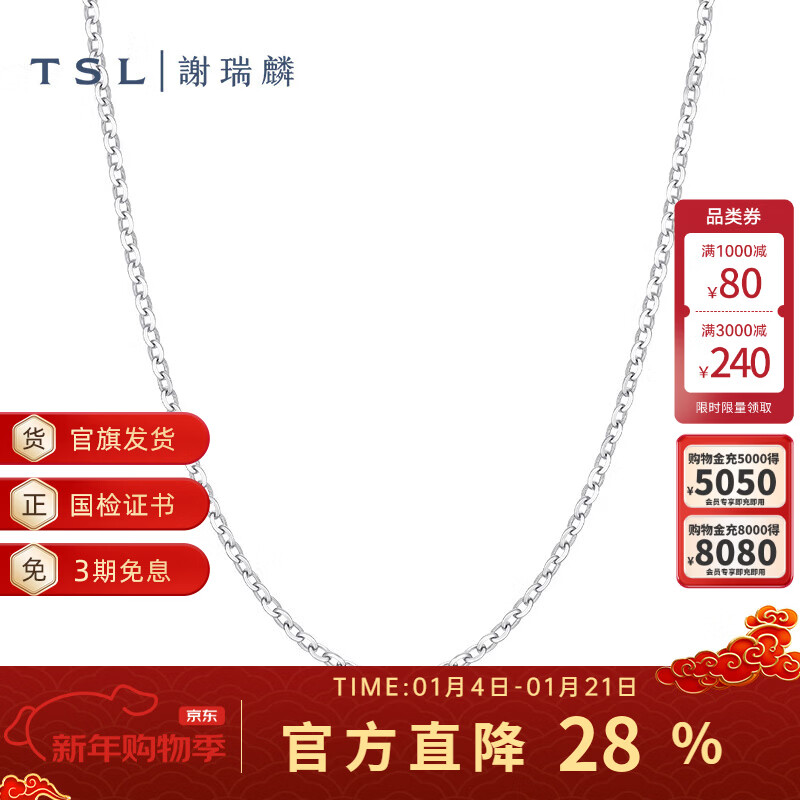 谢瑞麟(TSL)新年礼物铂金项链简约Pt铂金素链女士锁骨链BF471 铂金项链(约4.90g)
