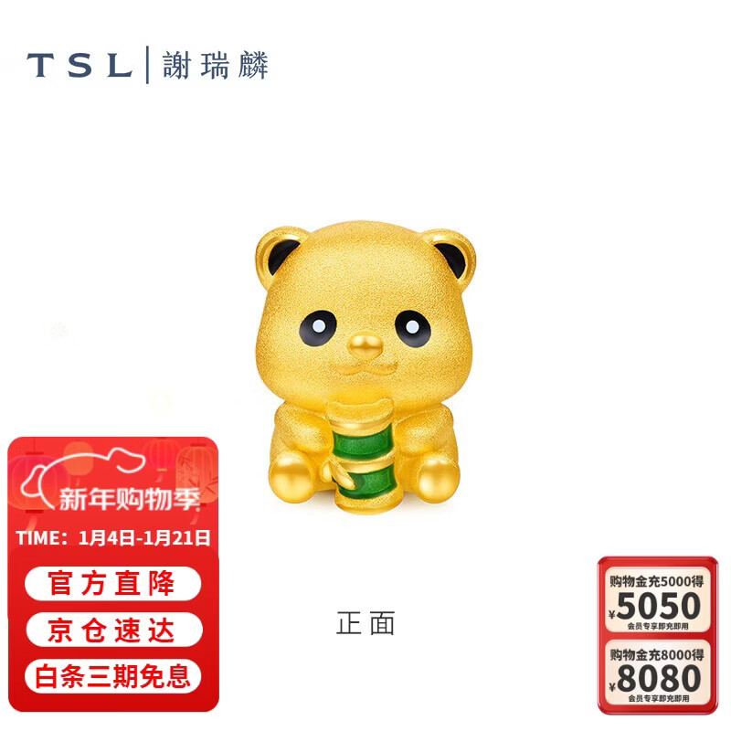 谢瑞麟(TSL)富足熊猫系列黄金转运珠动物竹子5D硬金路路通XQ384(抱竹熊猫)