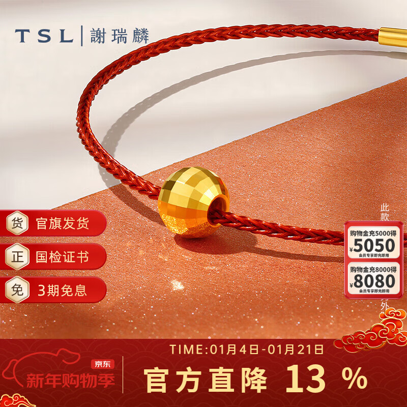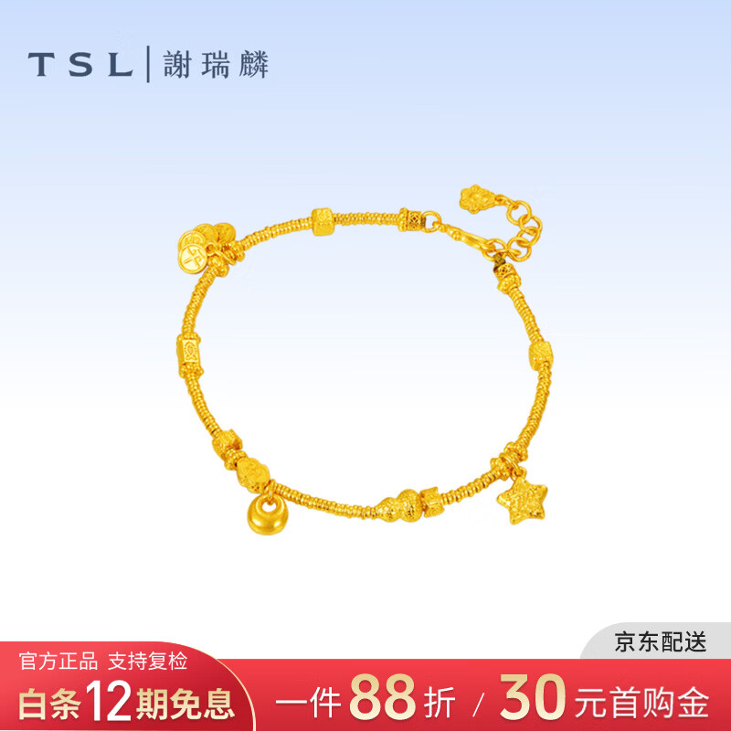 谢瑞麟(TSL)新年礼物马上有福黄金手链珐琅5D硬金工艺手绳手饰XQ596 XQ596-马上有福