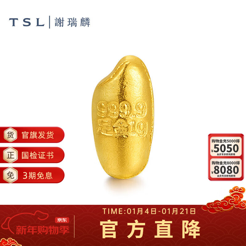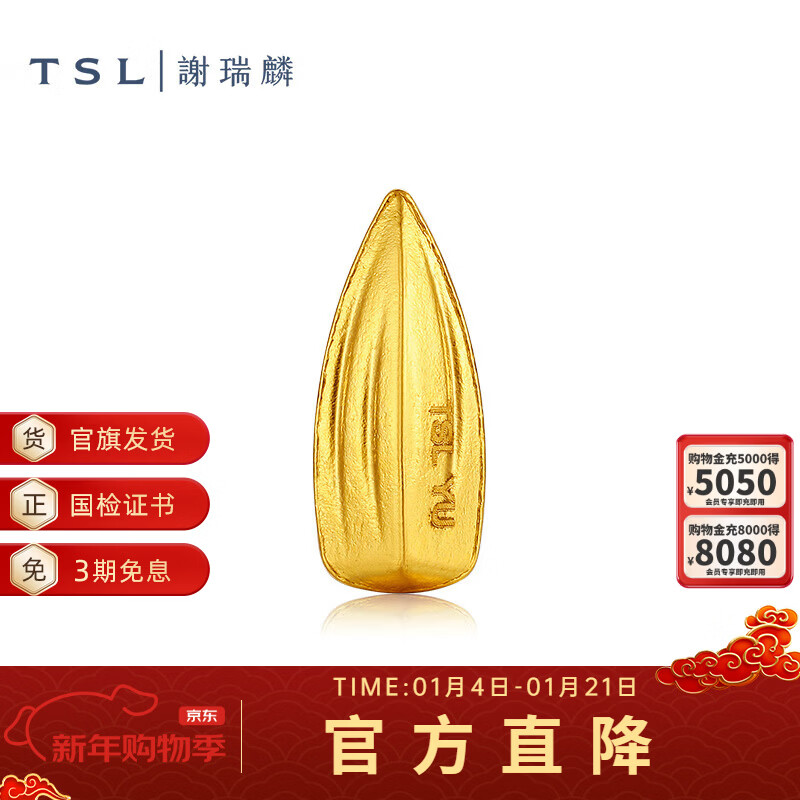 谢瑞麟(TSL)新年礼物金豆豆金瓜子黄金工艺产品生日小金豆YV452-YX547 YX712(金大米1g)