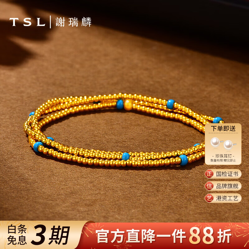 谢瑞麟黄金手链足金项链珐琅三圈金珠手串送女友老婆新年生日礼物计价 足金项链珐琅三圈手串约6克