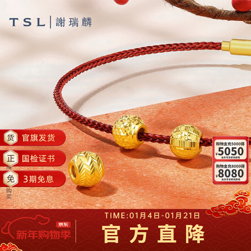 谢瑞麟(TSL)新年礼物黄金转运珠女款几何蹦迪珠足金串珠不含手绳XO929 0.25g 计价类(工费约140元)