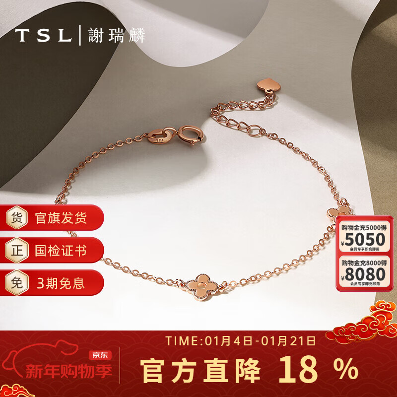 谢瑞麟(TSL)新年礼物18K金手链女款幸运花彩金手链手饰生日BE784 定价类(链长16cm+尾链3cm)