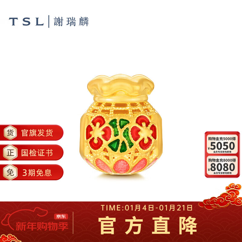 谢瑞麟(TSL)花丝福禄系列福袋葫芦黄金转运珠5D硬金工艺不含绳XQ471-XQ473 XQ472