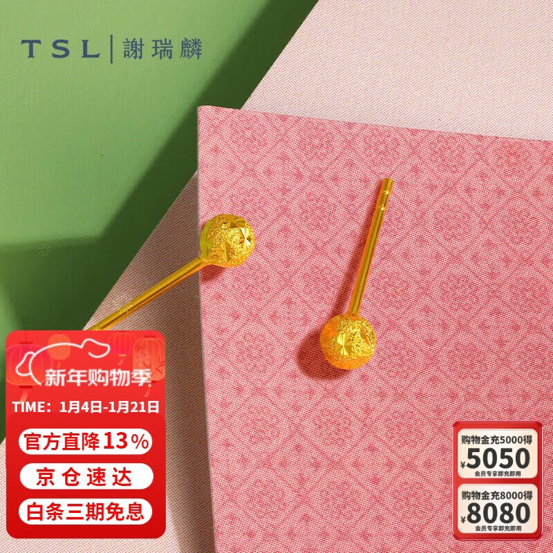 谢瑞麟(TSL)新年礼物黄金耳钉5G工艺足金磨砂耳环耳饰XM104 约0.7g