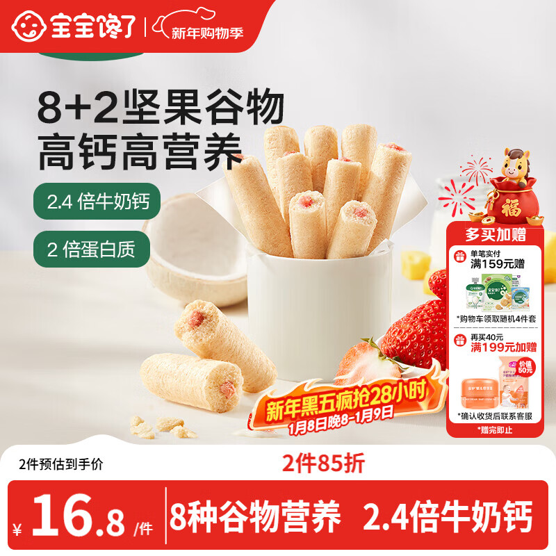 宝宝馋了高钙草莓酸奶谷物棒米果泡芙棒磨牙棒儿童零食60g