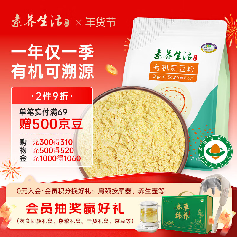 素养生活 有机黄豆粉2斤/袋 石磨碾压纯黄豆面生大豆粉糍粑煎饼果子原料