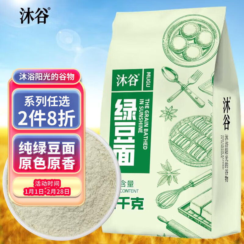 沐谷 东北绿豆面2斤(纯绿豆面粉杂粮粉绿豆糕杂粮煎饼烘焙原料)