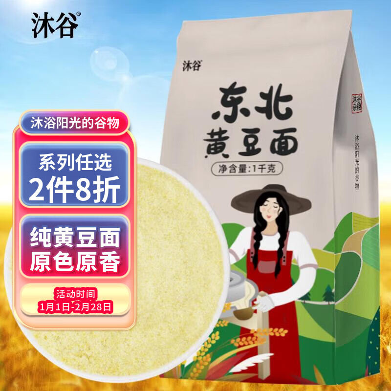 沐谷 黄豆面2斤(纯黄豆粉大豆粉豆乳盒子驴打滚煎饼馒头原料杂粮粉)