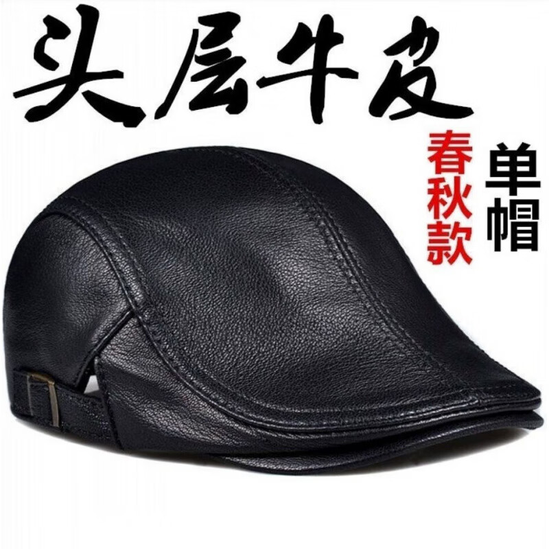 瑞立鑫真皮帽子男士美式中老年人时尚帽子牛皮贝雷帽春秋冬鸭舌帽前进帽 头层帽子好牛皮黑色 均码 中老年