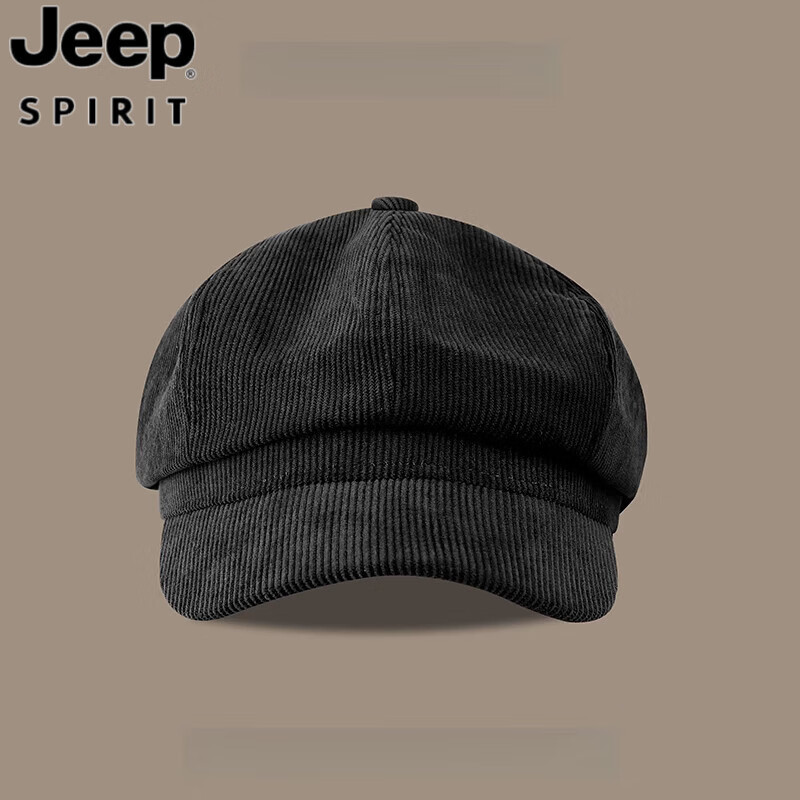 JEEP SPIRIT英伦复古灯芯绒八角帽女遮阳帽子日系文艺百搭报童蓓蕾贝雷帽男潮 CRdm-灯芯绒八角-黑色 M (55-59cm)一般均可戴