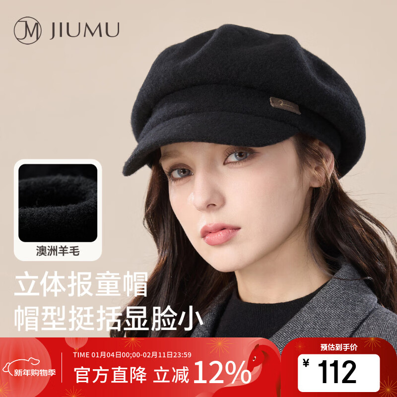玖慕(JIUMU)纯羊毛八角帽秋冬季保暖贝雷帽画家帽日系南瓜帽报童帽鸭舌帽子女