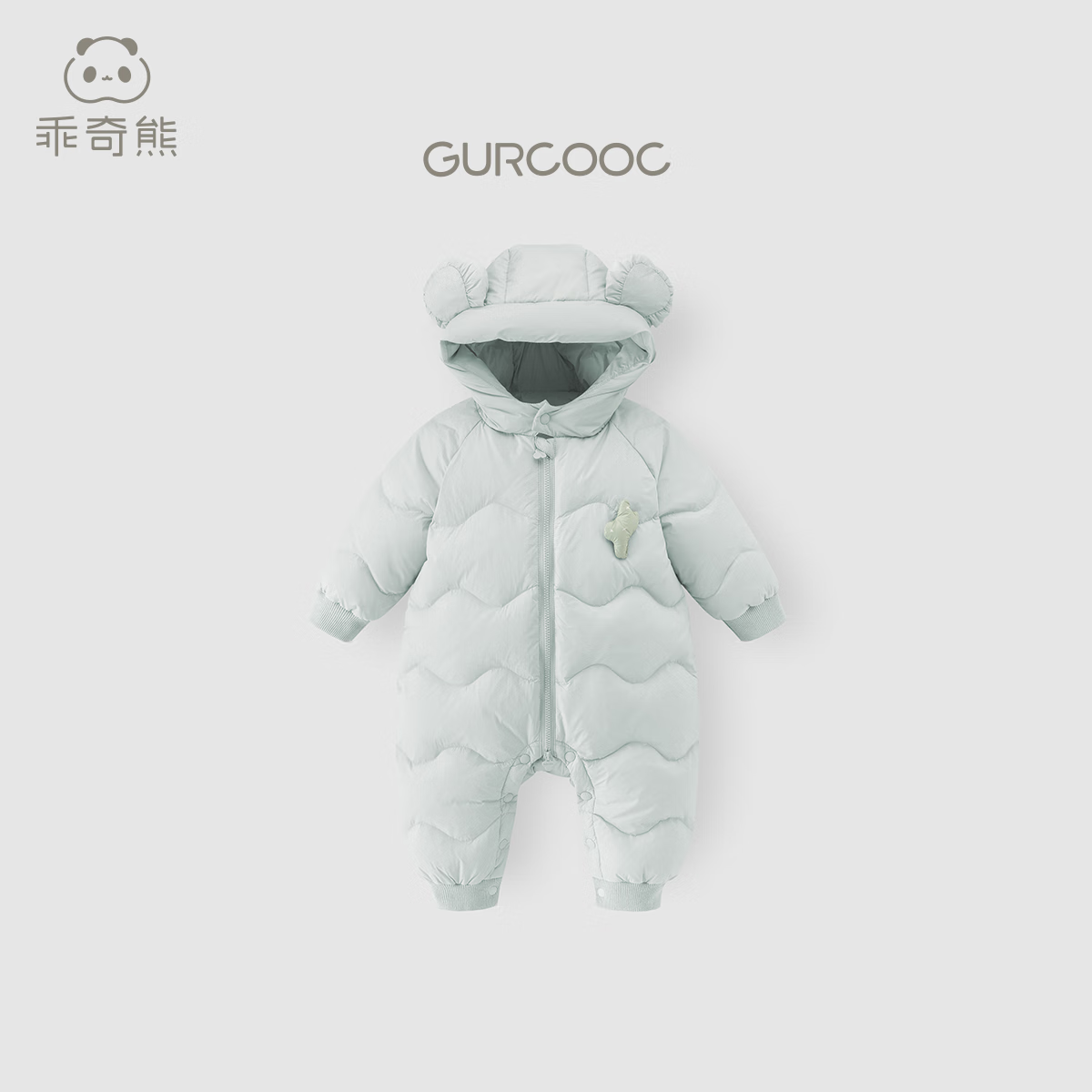 乖奇熊【三防轻薄羽绒服】宝宝连体衣冬季婴幼儿保暖连帽哈衣服外出冬装 浅湖绿 90cm