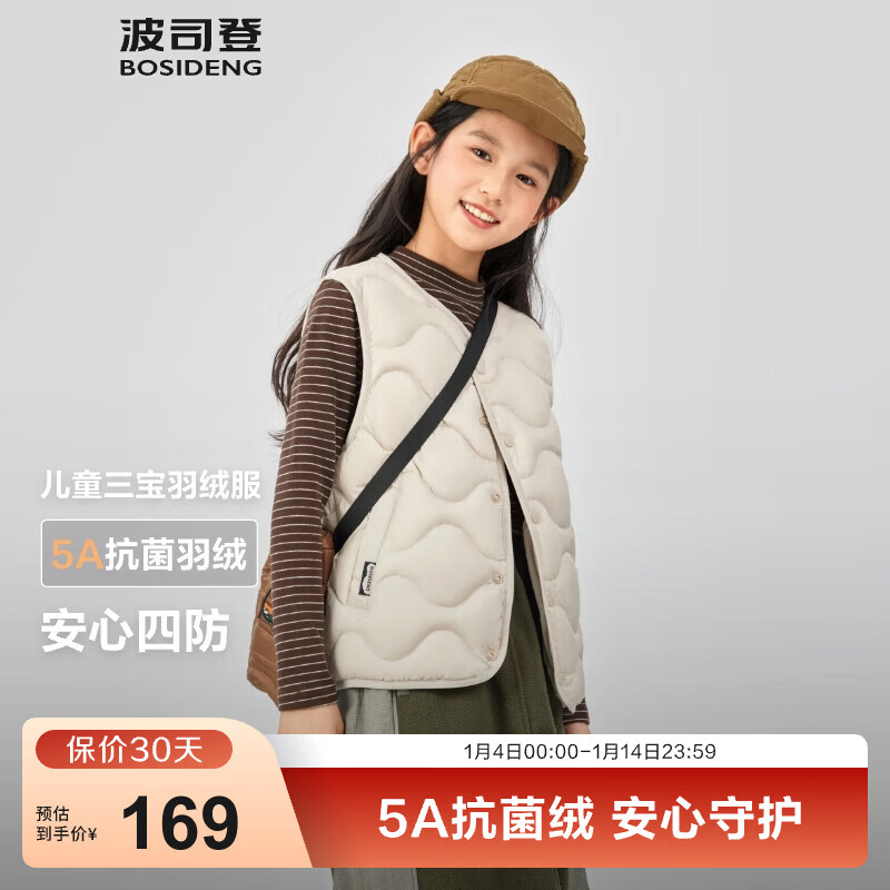 波司登(BOSIDENG)25新款轻薄羽绒服男女儿童5A抗菌4防葫芦纹巴恩风马甲T250135020W 燕麦色7185-趋势推荐 165 /84A 约 155-165cm 54kg