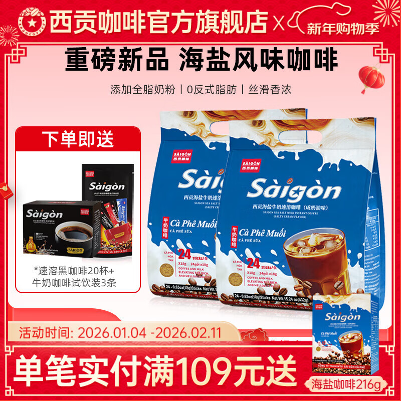 西贡(SAGOCOFFEE)越南西贡速溶牛奶咖啡炭烧海盐猫屎咖啡味三合一咖啡官方旗舰店 【共71条】海盐牛奶咖啡432g*2袋