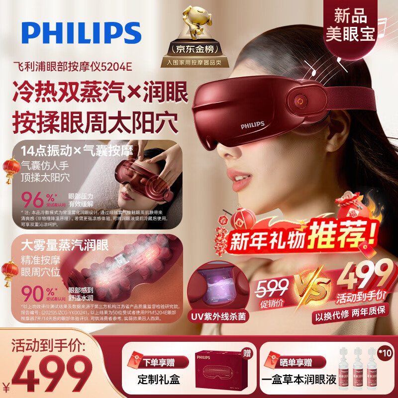 飞利浦(PHILIPS)美眼宝【重磅新品】眼部按摩仪器护眼仪蒸汽眼罩雾化按摩干润眼送女友老婆父母新年生日礼物5204E