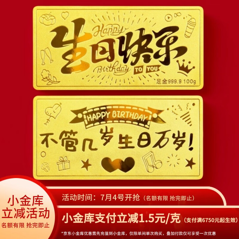 华姿金生日快乐金条足金9999投资储值送礼收藏黄金生日礼物女 生日快乐【国检证书+绒布袋】 5g