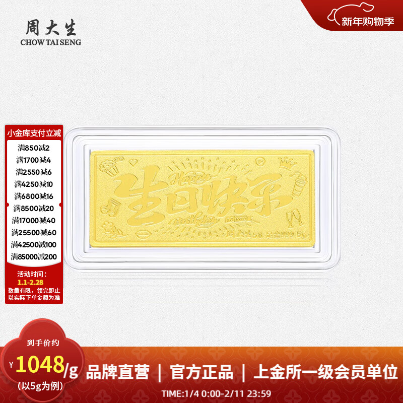 周大生黄金投资金金条足金金币金片未来可期工艺品新年礼物送女友 【限时特惠】生日快乐(绒布袋包装)-5g 5g