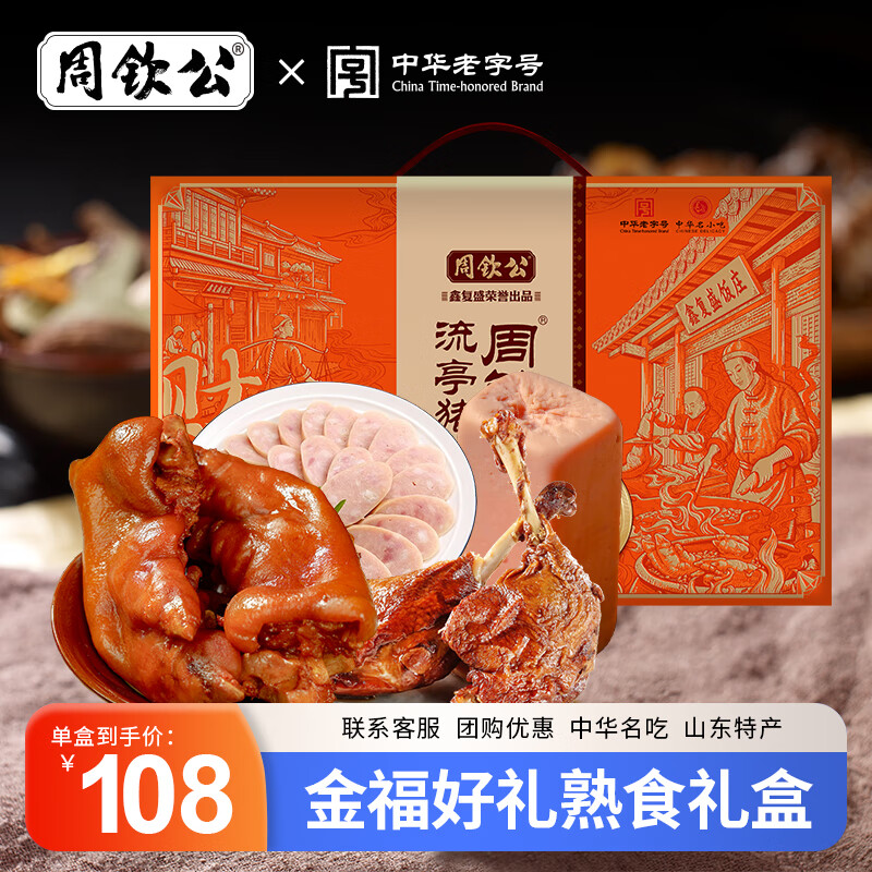 周钦公年货礼盒流亭猪蹄熟食腊味礼盒春节团购送礼送长辈中华老字号礼品 熟食丨金福好礼 5袋1260g