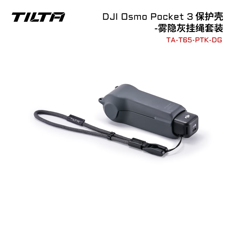 铁头TILTA 适用DJI大疆 Pocket 3保护壳套装 云台保护盖机身防摔壳 收纳支架防刮配件 【雾隐灰手腕带】运动相机通用挂绳
