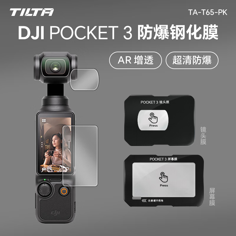 铁头TILTA钢化膜 适用于DJI Pocket3防爆钢化膜 屏幕膜+镜头膜