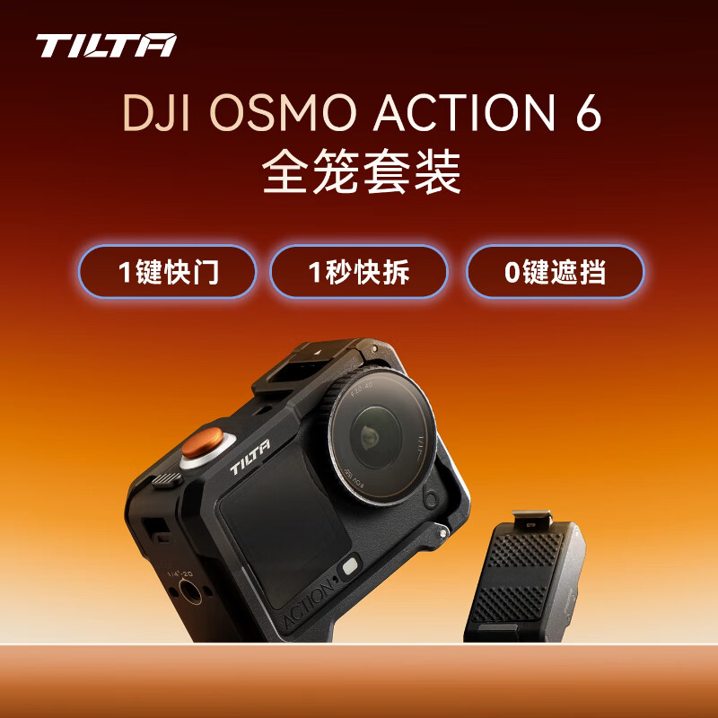 铁头TILTA兔笼适用大疆DJI OSMO Action6运动相机金属拓展框防摔保护磁吸底座骑行快拆全笼-黑色套装